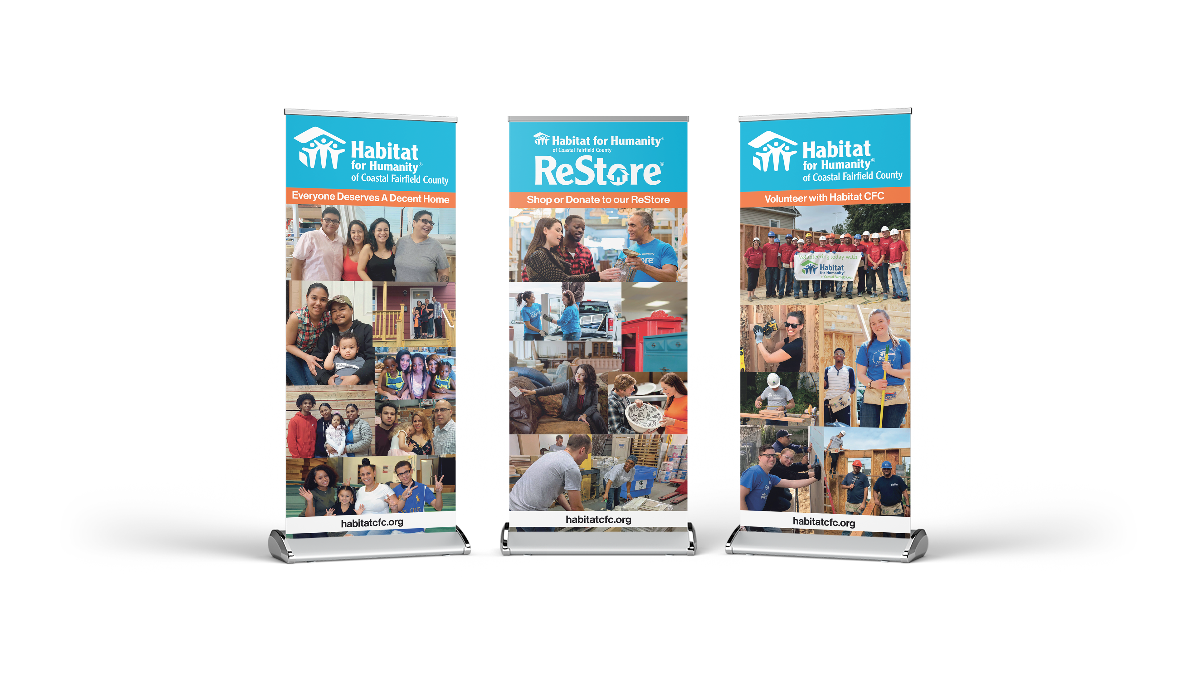 Retractable Banners that was created for Habitat CFC in Bridgeport, CT that helped the brand to have more awareness. The Banners is being uses at Habitat CFC Trade Shows, Events & more.